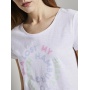 Женская футболка с короткими рукавами и круглым вырезом. Изделие свободного кроя из чистого хлопка и с крупными буквами спереди.
