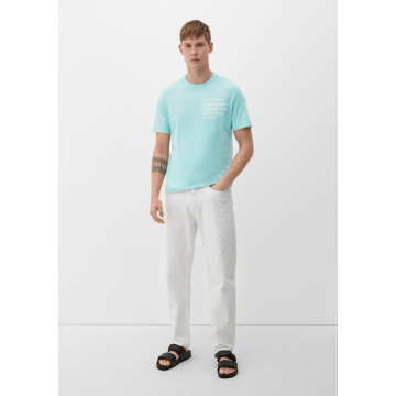 Мужская футболка обычной посадки от s.Oliver. Изделие имеет круглый вырез, короткий рукав, текстуру пряжи и напечатаную надпись.