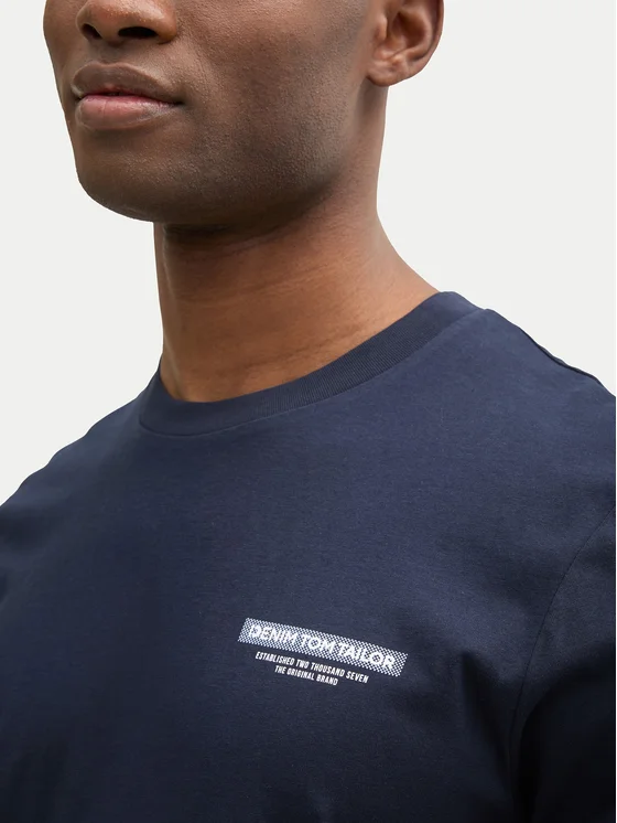 Мужская футболка Denim от Tom Tailor. Футболка с принтом, имеет круглый вырез, короткие рукава и классический крой. Ребристый вырез, принт и мягкая и приятная на ощупь ткань.