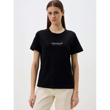 Женская футболка women's T-shirt от Tom Tailor. Изделие имеет круглый вырез, короткие рукава, обычную посадку, мягкую и удобную ткань. Спередт есть логотип бренда.