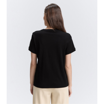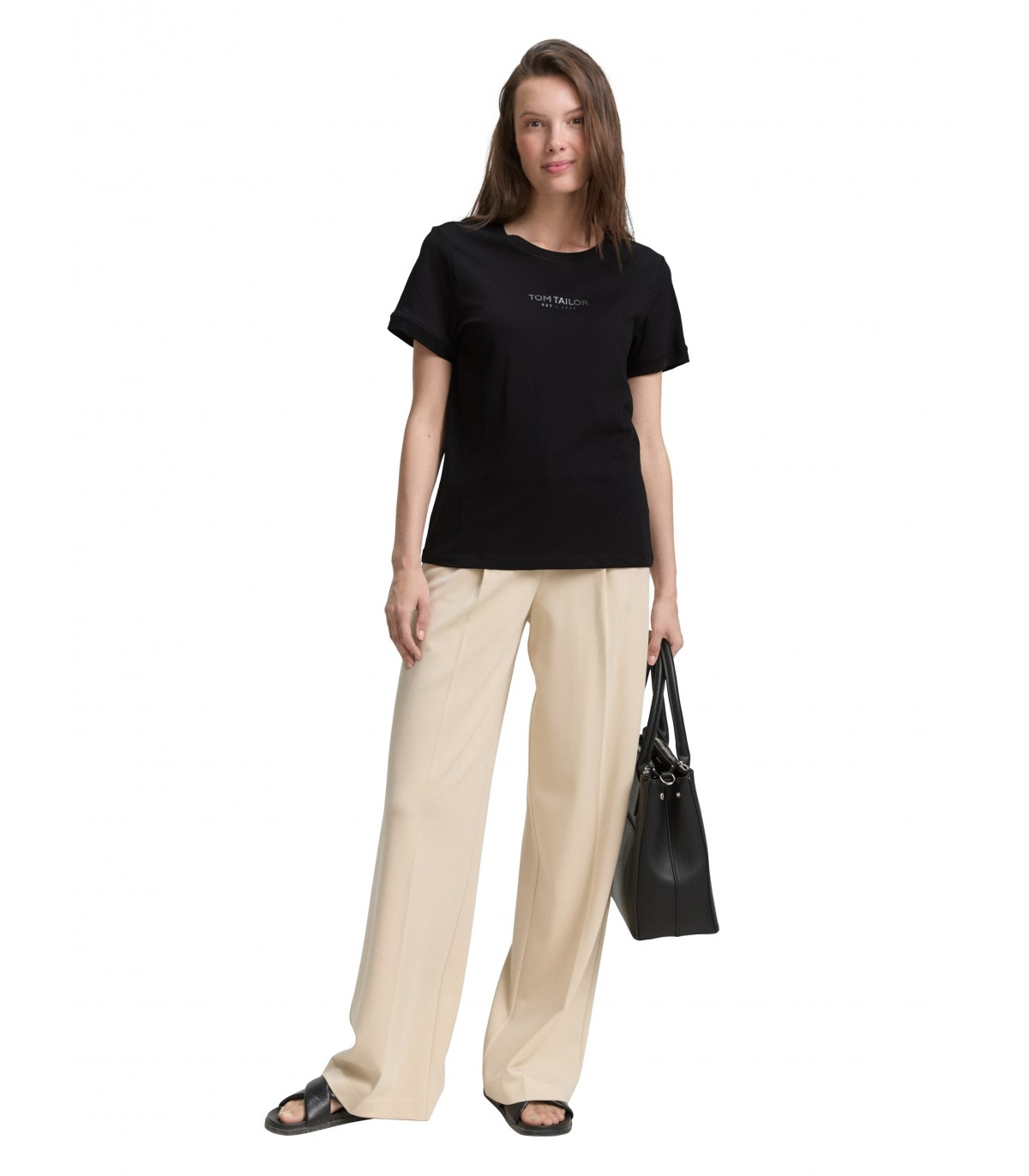 Женская футболка T-Shirt от Tom Tailor. Базовая футболка с логотипом на груди. Классический круглый вырез и короткие рукава обеспечивают удобную посадку.