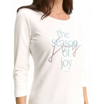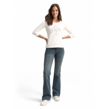 Женская футболка women's T-shirt от Tom Tailor. Футболка Tom Tailor с рукавом 3/4. Круглый вырез горловины и обычный крой. Модель с принтом и декоративными камнями.
