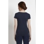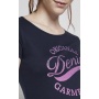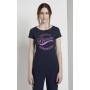 Женская футболка с короткими рукавами и круглым вырезом. Изделие сделано из трикотажа с крупным принтом на груди и окантовкой на вырезе. Состав - 100% хлопок.