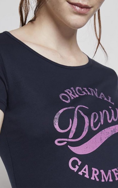 Женская футболка с короткими рукавами и круглым вырезом. Изделие сделано из трикотажа с крупным принтом на груди и окантовкой на вырезе. Состав - 100% хлопок.