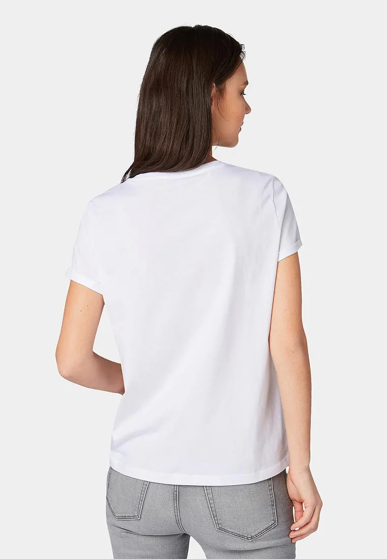 Женская футболка от Tom Tailor, отлично подойдет для использования в любое время года. Изделие имеет принт спереди. Состав - 100% хлопок.