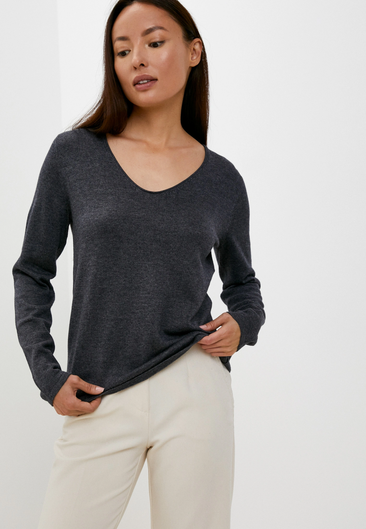 Женская кофта NOS от Tom Tailor. Изделие имеет V-образный вырез, длинные рукава, мягкую и удобную ткань. Кофта имеет лаконичный дизайн. Незаменимая универсальная вещь повседневного гардероба.