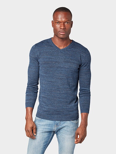Джемпер прямого кроя с V-образным вырезом горловины от Tom Tailor. С манжетами на рукавах и по низу. Декорирован меланжевым эффектом. Незаменимая вещь ежедневного гардероба. Состав - 60% хлопок, 40% полиестер.