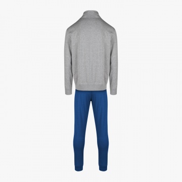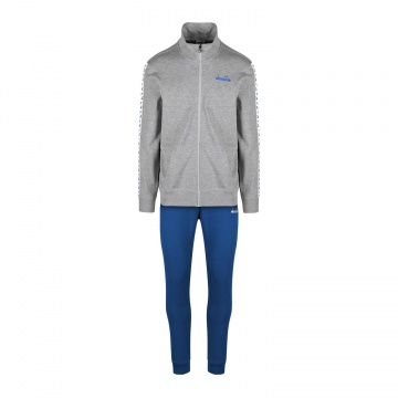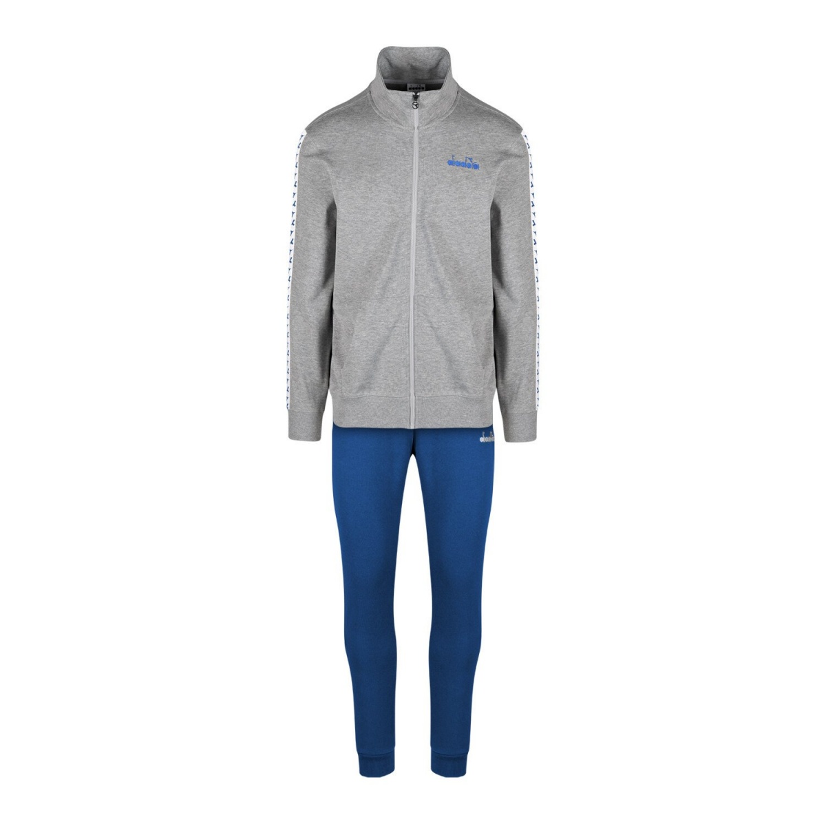 Мужской спортивный костюм Diadora с вырезом, застегивается на молнию по всей длине. На поясе и на рукавах есть логотип. Спортивные штаны с прорезью на талии и лодыжках. Состав - 100% хлопок.