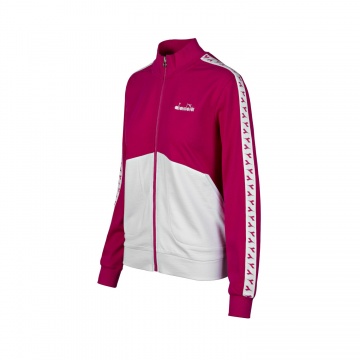 Женский спортивный костюм от Diadora. Облегающие манжеты на рукавах. Брюки имеют пояс на резинке, который обеспечивает надежную фиксацию вещи по фигуре.