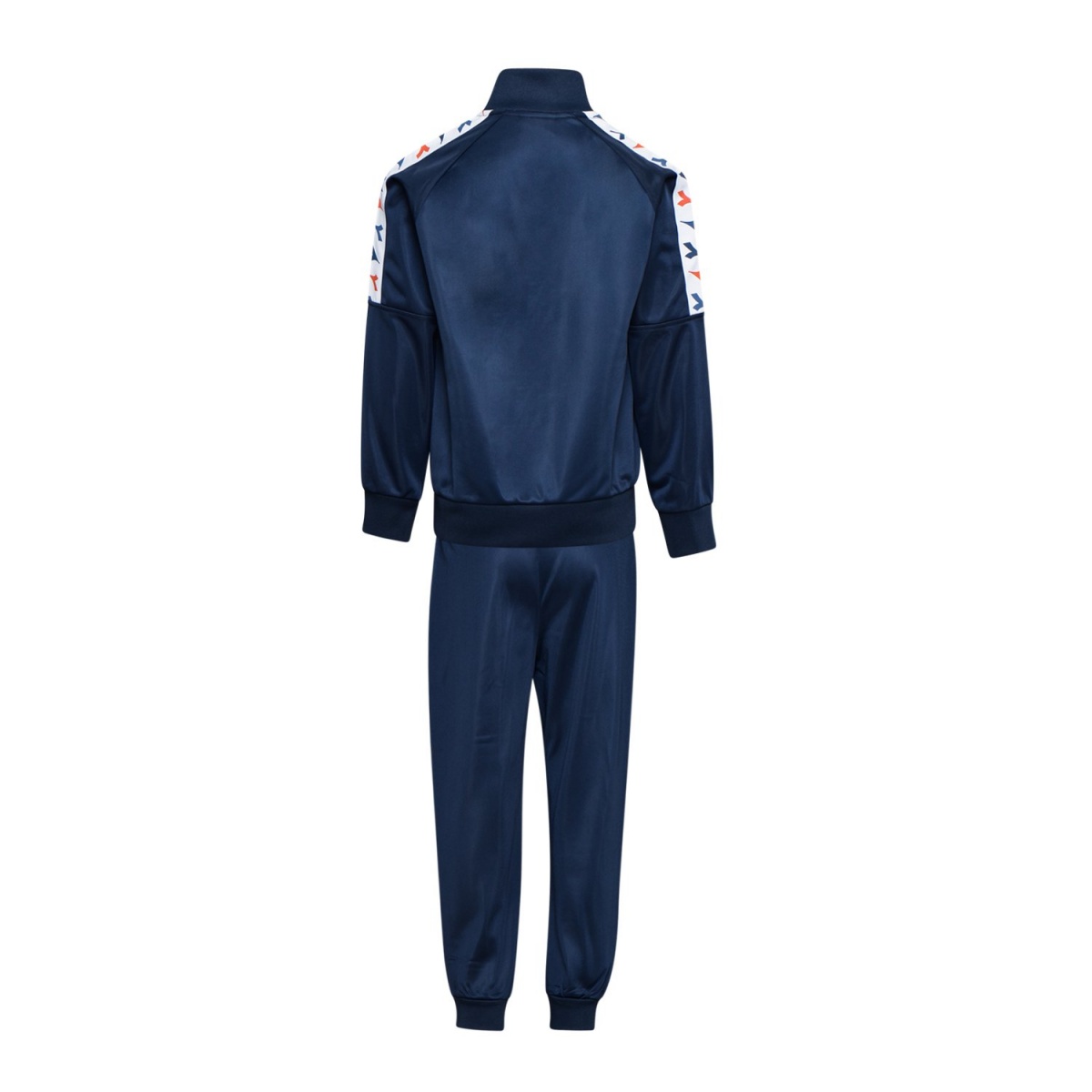 Детский спортивный костюм обычного покроя, состоящий из спортивной куртки и джоггеров с манжетами. Также есть эластичная талия и щиколотки. Толстовка на молнии в полный рост с двойным карманом спереди, а на брюках есть боковые карманы. Состав - 100% полиэстер.