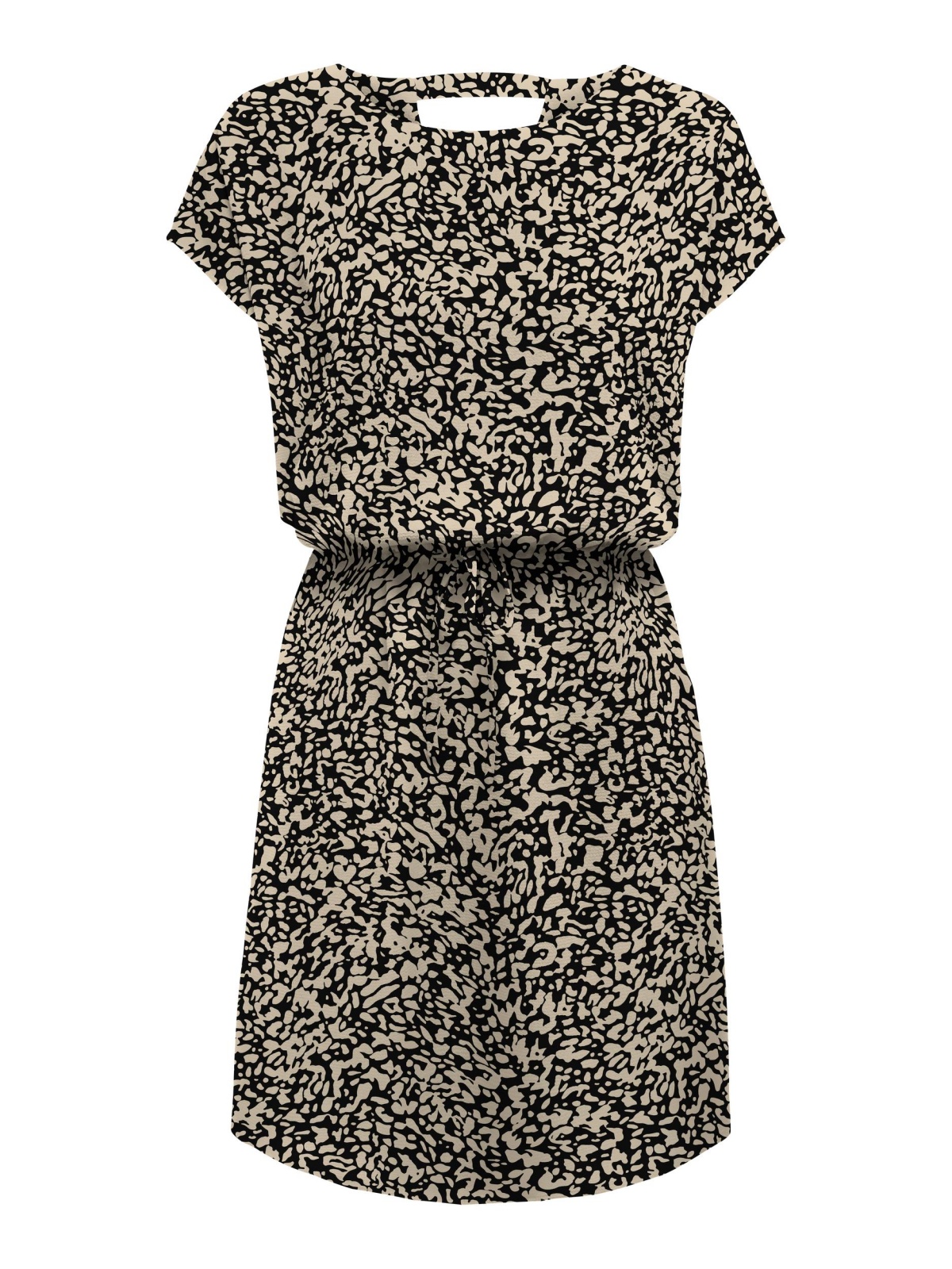 Женское платье с узором от ONLY. Изделие имеет эластичную талию, V-образный вырез сзади, круглый вырез и короткие рукава-крылышки.