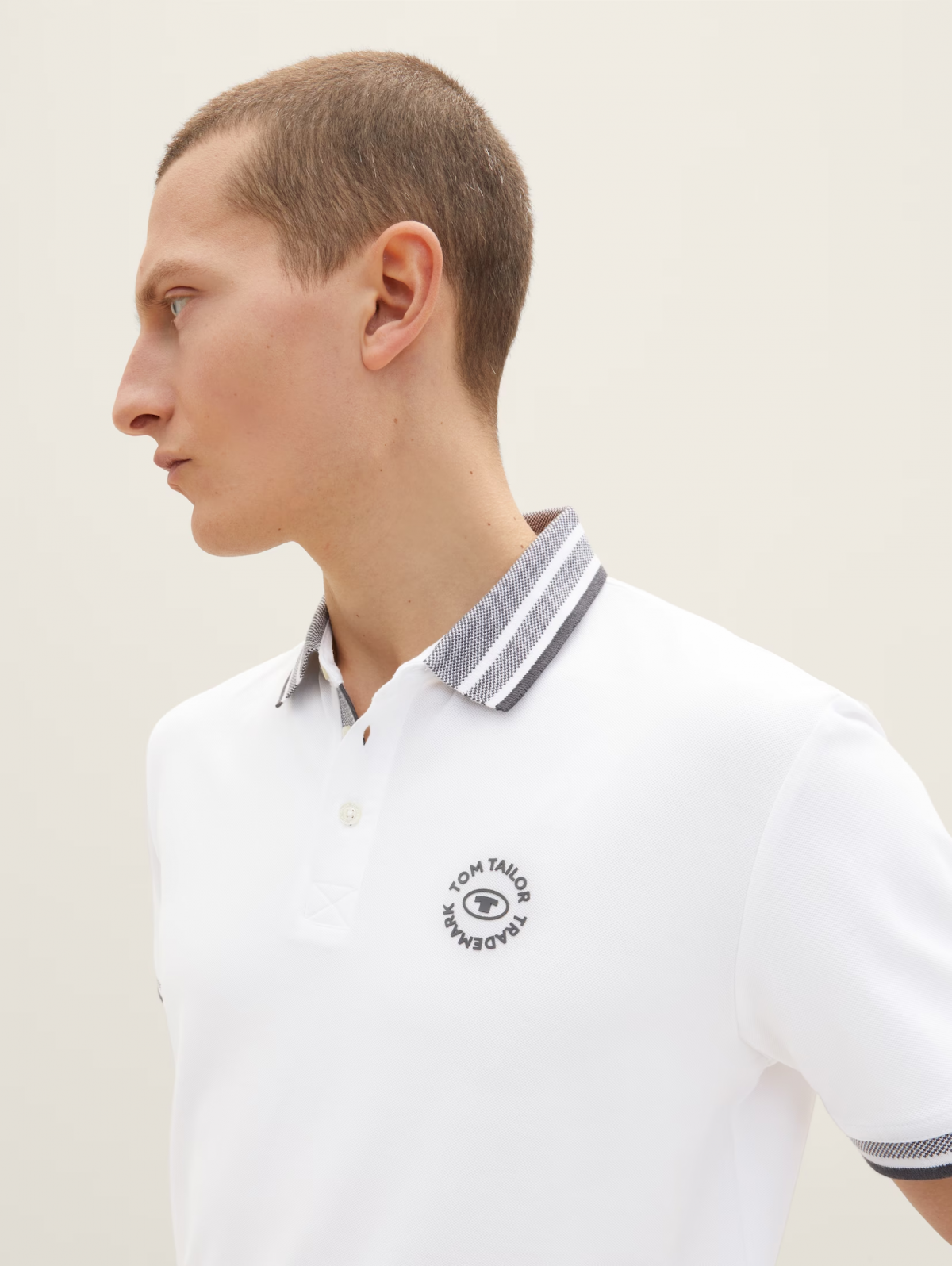 Мужская футболка-поло обычной посадки от Tom Tailor. Изделие имеет короткие рукава, воротник с несколькими пуговицами внизу и логотип на груди.