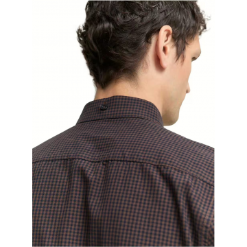 Мужская рубашка ДР Men's Shirt от Tom Tailor. Клетчатая рубашка с длинными рукавами, воротником, передней частью и манжетами на пуговицах и этикеткой с логотипом Tom Tailor. Изделие имеет обычный крой.