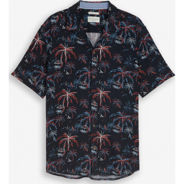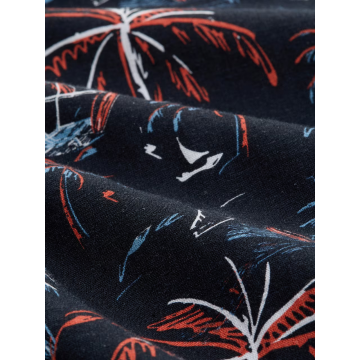 Мужская рубашка PRINTED VISCOSE LINEN SHIRT от Tom Tailor. Рубашка с коротким рукавом. Оптимальная посадка и обычный крой. Цветочный узор по всей поверхности, застежка на пуговицы и отложной воротник.