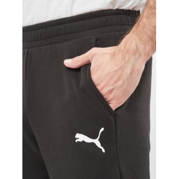 Мужские спортивные штаны зауженные к низу от Puma. Изделие имеет боковые карманы. Есть логотип PUMA на левой ноге. Состав - 68% хлопок, 32% полиэстер.