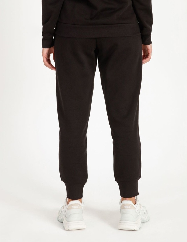 Женские спортивные брюки стандартного кроя от Puma. Изделие имеет два боковых кармана, пояс в рубчик со шнурком, манжеты в рубчик и рельефный резиновый принт с логотипом.