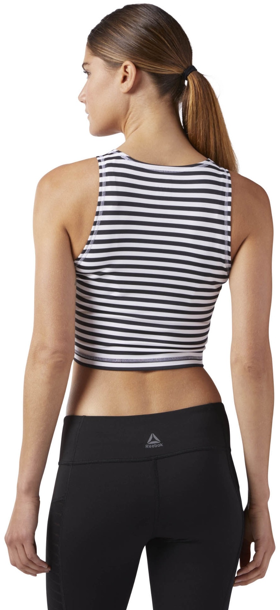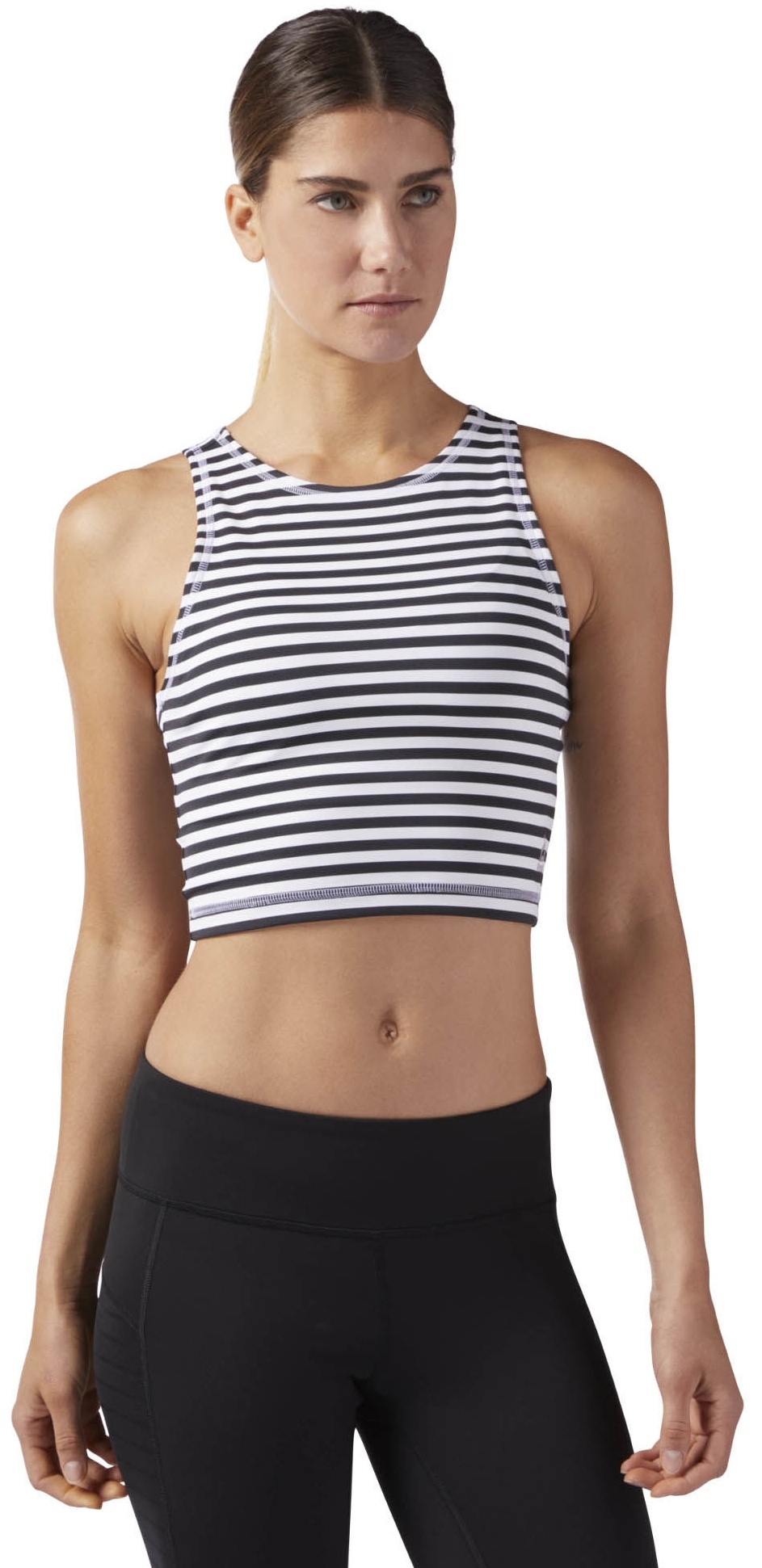 Стильный и практичный топ от Reebok. Эта модель – идеальный баланс стиля и комфорта. Технология Speedwick способствует отводу влаги с кожи и дарит ощущение сухости. Благодаря плоским швам майка приятно прилегает к телу. Укороченный крой и неглубокий вырез добавят шика в твой спортивный образ. Идеально для студийных тренировок, йоги, универсальных занятий в зале. Облегающий крой отлично подходит для интенсивных тренировок и совершенно не стесняет движений.
