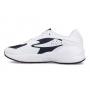 Кроссовки состоят из черной резиновой подошвы, которая усилена белоснежным пеноматериалом EVA. Он обеспечивает качественную амортизацию подошвы. Верх кроссовок выполнен из прочной белой кожи. Превосходную вентиляцию гарантируюет синтетическая сеточка черного цвета.