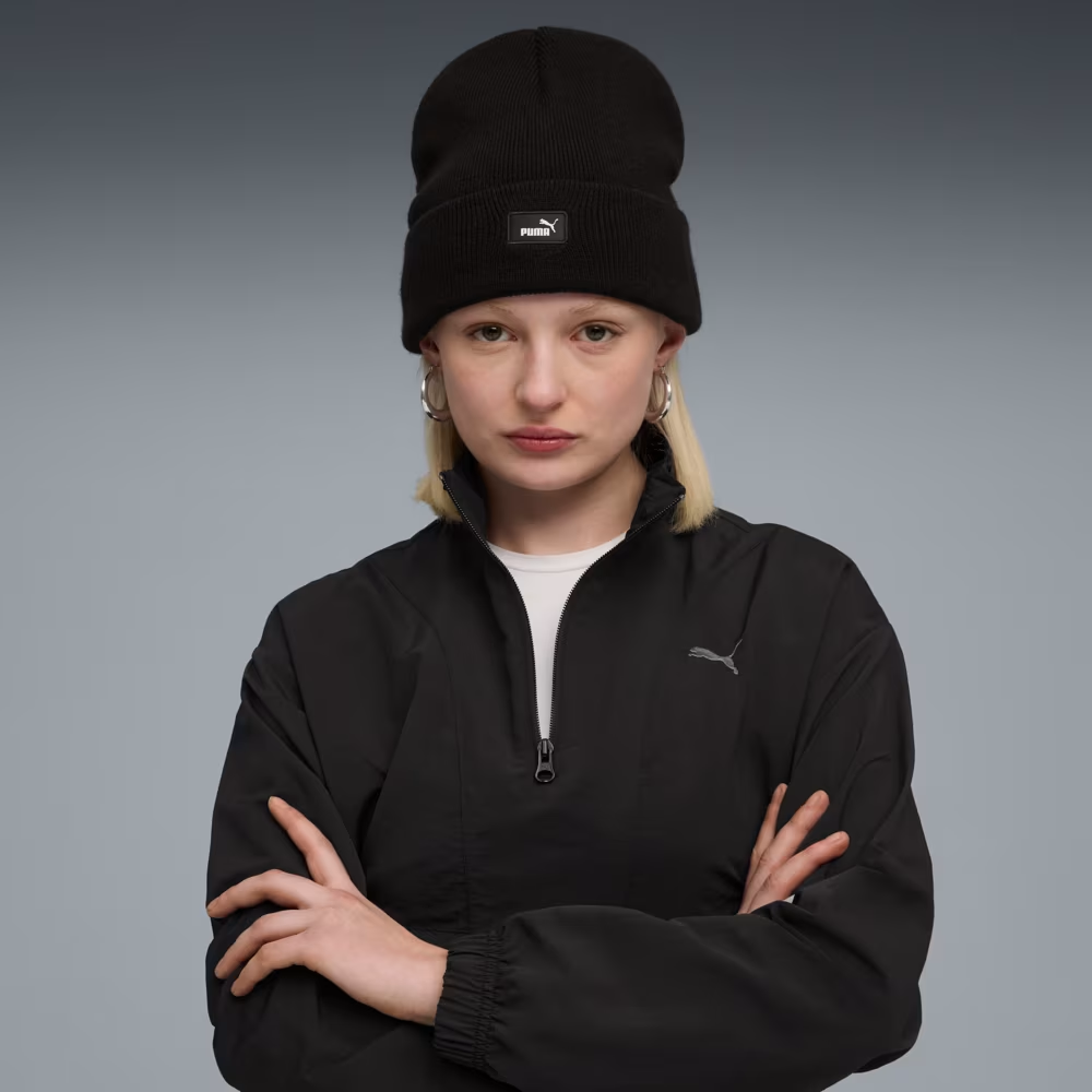 Модель виконана з м'якого та еластичного трикотажу, який забезпечує комфортне прилягання та надійно зберігає тепло. Класичний дизайн доповнений нашивкою PUMA, що надає образу спортивної динаміки та сучасного акценту.