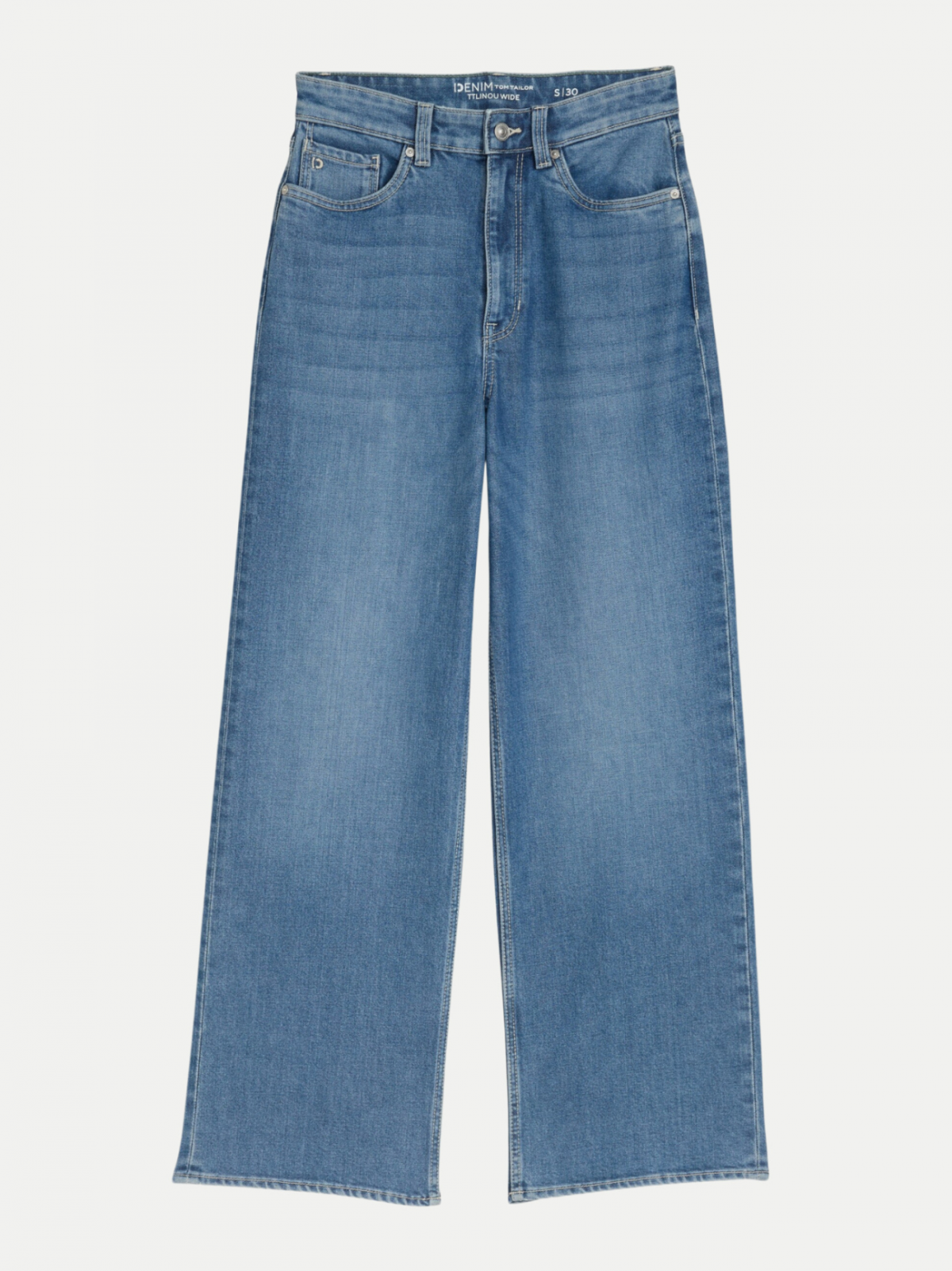 Жіночі джинси Jeans Femme Denim від Tom Tailor. Джинси з високою талією і п'ятьма кишенями, прорізними кишенями спереду і накладними кишенями ззаду. Застібка-олнія, гудзики та похилі бічні кишені.