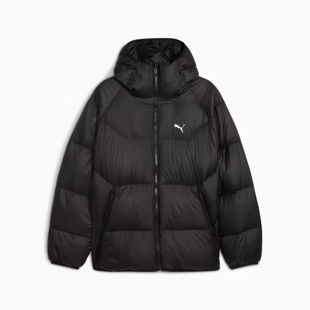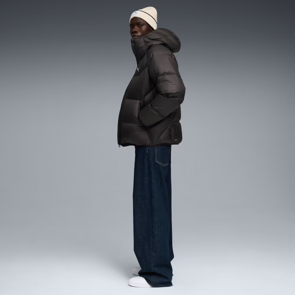 Чоловічий пуховик Hooded Down Puffer Jacket від Puma. Стандартна довжина, застібка на блискавці та кругла горловина. Кишеня на блискавці та прорізна кишеня.