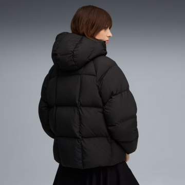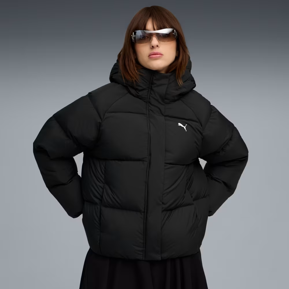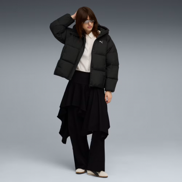 Жіночий пуховик Hooded Down Puffer Jacket від Puma. Стандартна довжина, застібка на блискавці та довгі рукави. Кишеня на блискавці та прорізна кишеня. Манжети та низ із внутрішньою еластичною обробкою.