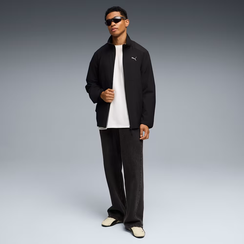 Чоловіча спортивна куртка PUMATECH Woven Track Jacket від Puma. Модель поєднує видиму функціональність та технологічну естетику, створюючи капсульну модель, яка одночасно і готова до вуличного стилю, та практичної.