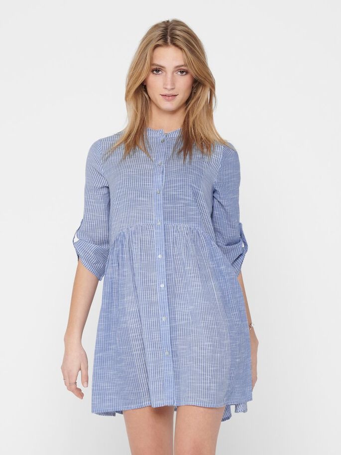 Жіноче вільне плаття від ONLY. Виріб має смуги контрастного кольору, гудзики спереду і рукава 2/4 довжиною.